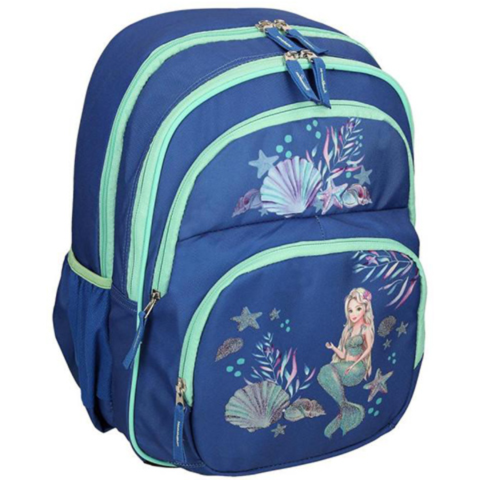 A kék alapszínű négyrekeszes iskolatáskát világoszöld cipzárak díszítik és a sellő minta igazán lányos megjelenést garantál használója számára az iskolai mindennapok során. Az ergonomikus hátkiképzése és a puha párnázott, állítható vállpántjai hozzájárulnak a gerinc megfelelő tartásához és a legmagasabb kényelemhez. A táska na