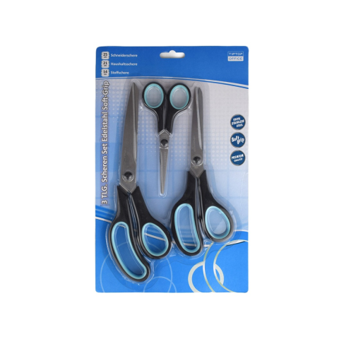A Soft Grip 3 db-os olló szett ideális választás lehet mindazok számára, akiknek fontos a kiváló minőség és a kényelmes használat. Ez a szett három különböző méretű ollót tartalmaz, hogy különféle feladatokhoz alkalmazkodjon. A tartalomban szereplő ollók méretei 25 cm, 21 cm és 14 cm, így minden igényt kielégítenek az otthoni vagy irodai feladatoktól kezdve egészen a mű