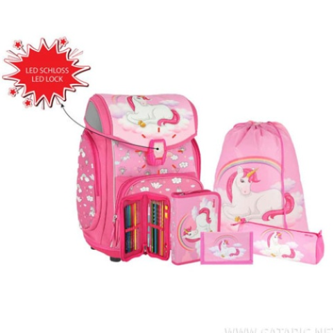 Jellemzők: Unikornis iskolatáska szett 5 db-os kiváló minőség ergonomikus kialakítás fényvisszaverő elemekkel LED-es csatos zárral párnázott hátfallal pénztárcával, tolltartókkal és tornazsákkal Kor: 6+ Jellemzők: Unikornis iskolatáska szett 5 db-os ki