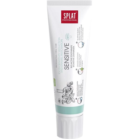 Fogkrém - fluoridmentes, természetes, zománcvédelem, érzékeny fogakra, mentolos ízű, 100 ml kiszerelésben kapható A SPLAT Professional Sensitive fluoridmentes fogkrém a fogak érzékenységének csökkentésére és a fogzománc helyreállítására szolgál. A bioaktív fogkrém természetes kivonatokat és esszenciális olajokat