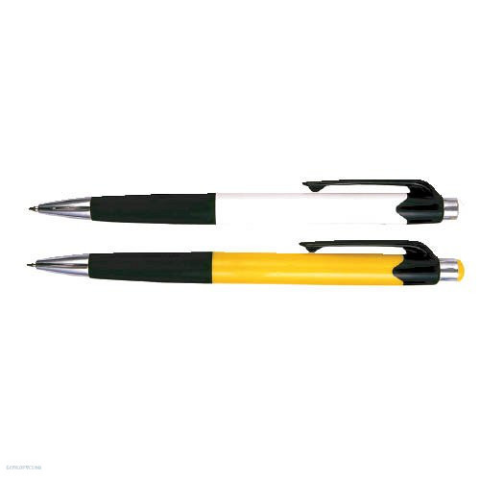 Golyósirón gumi tollfogóval, vegyes színű tolltesttel, kék írásképpel, cserélhető tollbetéttel. A golyósirón rendelhető csak fehér, csak kék, csak sárga vagy átlátszó tolltesttel is. Logózásra kiválóan alkalmas! Vegyes színekben. Vonalvastagság: 0,5 m