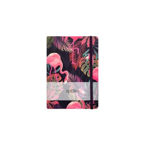 1 kép Spoko Jegyzetfüzet SPOKO A/5 96 lapos gumis keményfedelű vonalas flamingó