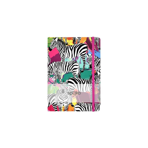 1 kép Spoko Jegyzetfüzet SPOKO A/5 96 lapos gumis keményfedelű vonalas zebra