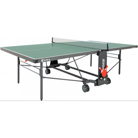 A Sponeta S4-72e zöld kültéri pingpongasztal kiváló választás családi, iskolai vagy klubszintű használatra, köszönhetően stabil szerkezetének és időjárásálló felületének. Termékjellemzők: • Méretek nyitott állapotban: 274 x 152,5 x 76 cm• Tárolási méret: