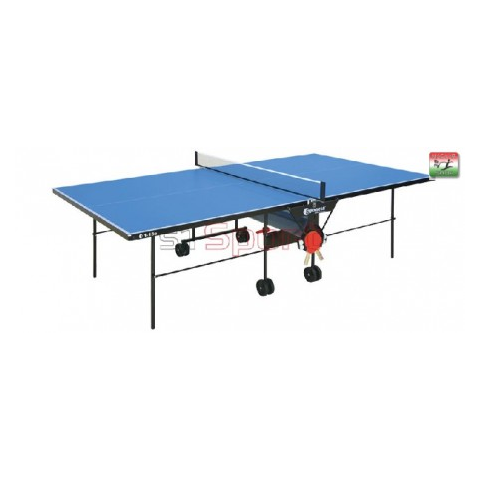 1*-os 4 mm-s vastagságú melamin műgyanta játéklap (kék színű), 36 mm-es fém merevítő kerettel. Automata vázszerkezet 25 mm vastag csőből. Rögzítési rendszer: kampókkal. Mozgatás 4 db dupla kerékkel történik, melyből 2 db elforgó. Biztonsági merevítő az asztallap alatt. Tartozékok: ütő- és labdatartó, hálótartó hálóval (galvanizált fém vázzal, fekete 8 mm-s osztású hálóval) képes összeszerelési útmutató és magyar nyelvű leírás. Méretek nyitott