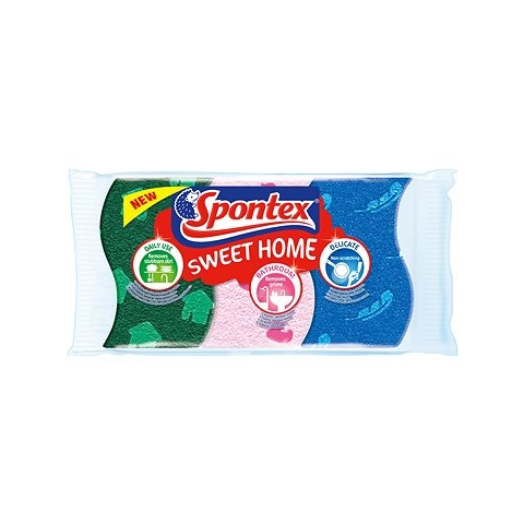 Mosogatószivacs - 3 db A SPONTEX Sweet Home viszkóz szivacsok segítségével a takarítás a lehető legegyszerűbbé válik. Praktikus S alakú alakjuknak és eltérő kialakításuknak köszönhetően mindhárom szivacs más tí