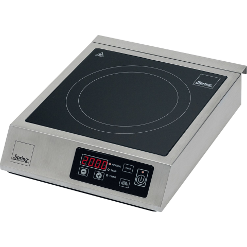 SPRING indukciós készülék 3,5 kW teljesítménnyel. A főzőlap rozsdamentes acélból készült, fekete és ezüst színben. Méretek: magasság: 95 mm, hosszúság: 320 mm és szélesség: 400 mm.