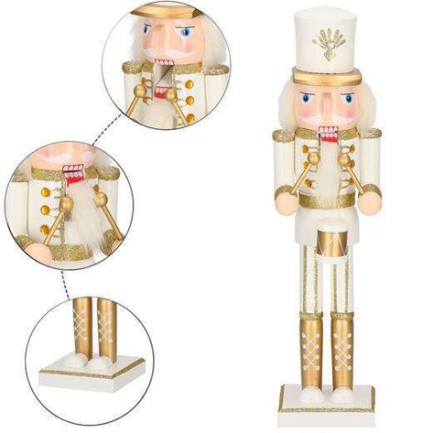 Springos 38 cm-es diótörő karácsonyi figura dobbal, fehér/arany karácsonyi dekoráció 1 kép