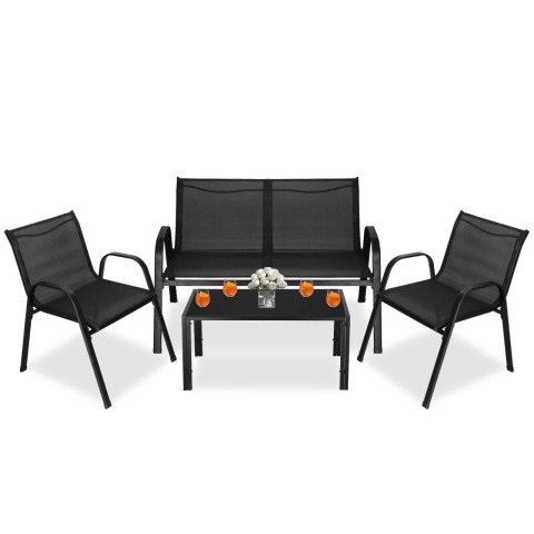 Springos Fekete Textilén Kerti Ülőgarnitúra 4 Személyre - Stílus és Kényelem a Kertben 🏡 Élvezze a pihenést és a kikapcsolódást a szabadban a Springos elegáns, fekete kerti ülőgarnitúrájával. Ez a 4 személyes szett tökéletes választás a kertbe, teras...