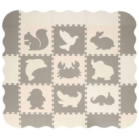 1 kép Springos Állatos puzzle szőnyeg gyerekeknek, 120x120 cm, krém, szürke