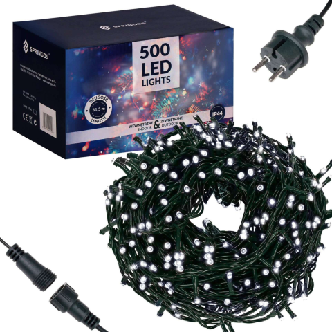 Springos Karácsonyi Fényfüzér - 500 LED - Hidegfehér - 25,5 méter Ragyogó, ünnepi hangulatot varázsol otthonába ezzel a Springos 500 LED-es karácsonyi fényfüzérrel! ✨ Főbb jellemzők:   500 energiatakarékos LED:  Hosszú élettartam és ragyogó fényerő....