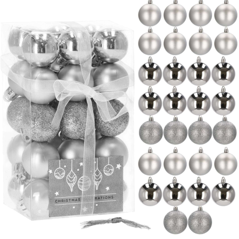 Springos Karácsonyfadísz gömbök: 30 db ezüst karácsonyi dísz 🎄 30 db elegáns ezüst karácsonyfadísz gömb, tökéletes választás az ünnepi dekorációhoz. Különböző felületkezelésű gömbök (matt, csillogó, fényes) biztosítják a változatosságot és a ragyogá...