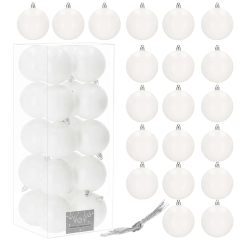 20 db 8 cm-es fehér karácsonyfadísz: Ünnepi hangulat törhetetlen díszekkel ✨ Idén is varázsolj otthonodba karácsonyi hangulatot ezekkel a gyönyörű, törhetetlen fehér karácsonyfadíszekkel! A 20 darabos szett elegendő ahhoz, hogy feldíszítsd a karácson...