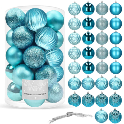 30 db 8 cm-es kék karácsonyfadísz: Ünnepi fények a fájára ✨ Ez a 30 darabos karácsonyfadísz készlet 6 különböző, gyönyörű kék árnyalatú gömböt tartalmaz, melyekkel egyedi hangulatot varázsolhat karácsonyfájára. A díszek műanyagból készültek, így tör...