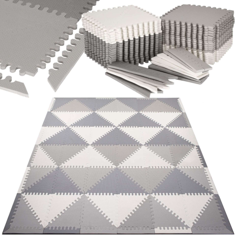 A háromszögű formájú puzzle habszivacs szőnyeg, kellemes tapintású és puha, amely 96 elemből áll. Az egyes részek gyorsan összekapcsolhatók, kényelmes játékfelületet teremtve a gyerek számára. A szőnyeg 1 cm vastag, ezért tökéletesen védi a gyereket a...