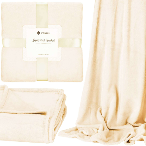 Springos Krém Színű Extra Puha Takaró - 200 x 220 cm - Tökéletes Kényelem ☁️ Ez az extra nagy, 200 x 220 cm-es krém színű takaró a tökéletes társ a hűvös estékhez. Puha poliészter szálainak köszönhetően rendkívül meleg és kellemes tapintású, ideális a...