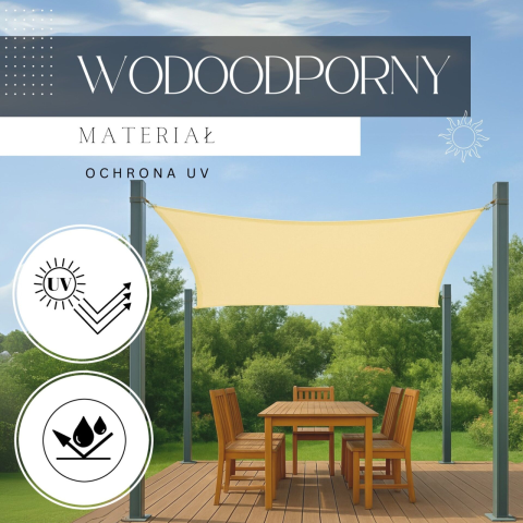 1 kép Springos vízálló szögletes Napvitorla 4x3m 160 g/m2 - Bézs
