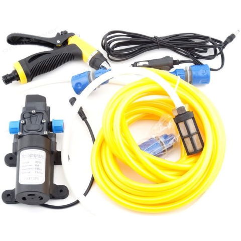 1 kép sprinkler 12V autómosó készlet szivargyújtó csatlakozóval. 12V 80W önfelszívó szivattyú + slag + locsoló fej