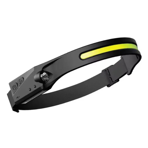 Innovatív tervezésű fejlámpa. Led szalaggal és szúrófénnyel. Kézmozdulat segítségével ki-be kapcsolható. Stroboszkóp funkció. USB-ről tölthető polymer akku.