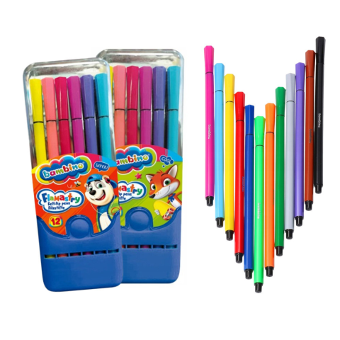 Markerek, amelyeknek minden diák hátizsákjában ott kell lenniük. Intenzív színek, hosszú élettartam, könnyű lemosás a bőrről és a ruhákról, szellőzős sapka, nyomástartó íróhegy igazolja a termék magas minőségét. A BAMBINO filctollakat az Európai Parlament