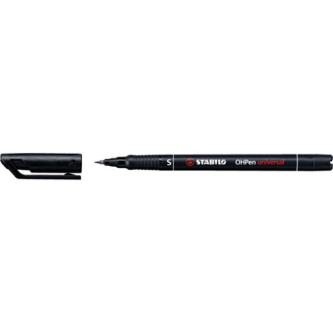 PERMANENT MARKER 0,4MM, STABILO OHPEN S FEKETE Vízálló és törlésbiztos. Szinte minden felületen használható; fóliára és sima felületre is. Alkoholbázisú tinta; 3 napig nem szárad ki kupak nélkül. Szellőző kupak. Ergonomikus, csúszásmentes fogórész, PP