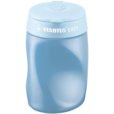 Hegyező - kézi, 3 nyílás, szín: kék Ořezávátko STABILO EASYsharpener L se zásobníkem v modré barvě a variantě pro leváky vám umožní ostrouhat 3 různé tloušťky tužek (3,15, 8 a 10 mm). Strouhátko je ideální pro EASYgraph a E