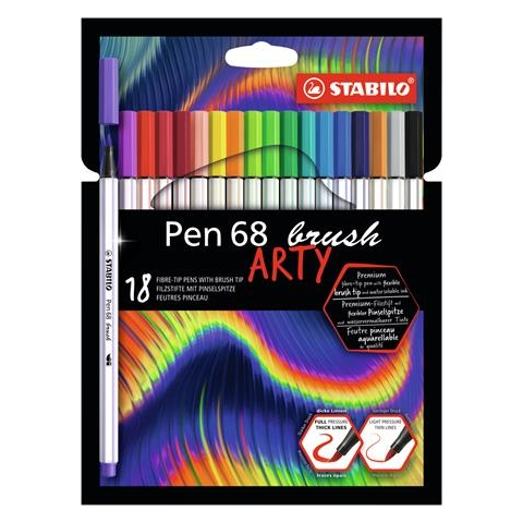 Ecsetirón készlet, STABILO "Pen 68 brush ARTY", 18 különböző szín - TST56818 - Rostirónok és tűfilcek - - kalligráf íráshoz, szépíráshoz és dekoráláshoz kiválóan alkalmas ecsetfilc