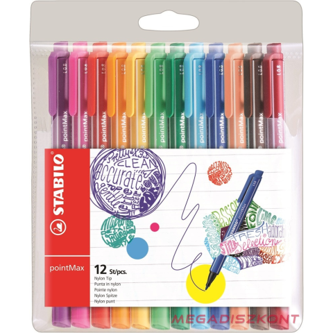 Filctoll STABILO PointMax 0.8 12db-os készlet - 07.00430 - Filctollak, tűfilcek, rostirónok -