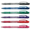 Műanyag testű nyomógombos golyóstoll. Ergonómikus fogórész.Írásvastagság: 0,3 mm. Tinta színe megegyezik a tolltest színével. A betét csak kék színben kapható.