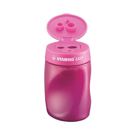 Hegyező, háromlyukú, tartályos, jobbkezes, STABILO Easy, rózsaszín jobbkezeseknek kialakított 3 lyukú, tartályos hegyező használható a STABILO Easy ergo töltöceruzához, továbbá minden normál és vastag testű ceruzához innovatív kialakítás a kényelmes ta