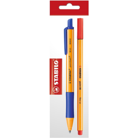 1 kép STABILO kuličkové pero pointball, modré + liner point 88, červený (4006381466998)