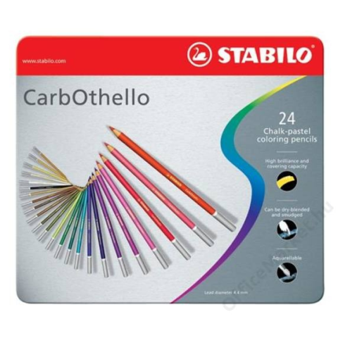 Pasztell ceruza készlet, kerek, fém doboz, STABILO CarbOthello, 24 különböző szín (TST14246) pasztell színes ceruza művészeknek, művész-tanulóknak és mindenkinek, aki kedveli a kreatív tevékenységeket száraz és faszénhez hasonló, poros felvitel ceru