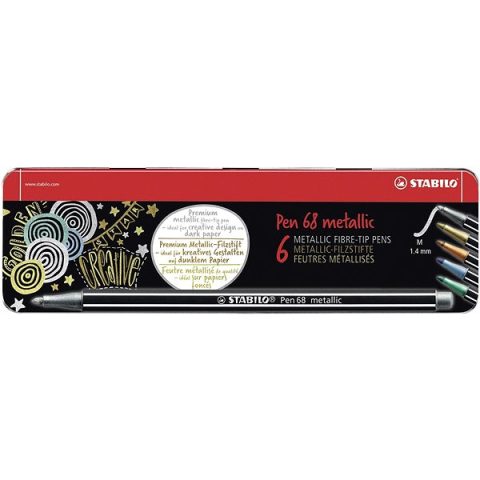 Filctoll készlet - alkalmas papír felületekre, tinta, lemosható, metálos, kerek heggyel, vonalvastagság 1,4 mm, hatszögletű markolat, 6 marker a csomagban A szuper STABILO Pen 68 metallic 6 db fém tok termék leglényegesebb előnyei A szuper STABILO markerek elengedhetetlenek az íráshoz és a rajzoláshoz Hatszögletű alak, hogy egyszerű legyen kézben tartan