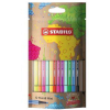Egy nagyon praktikus szettet szerezhetsz be gyermekednek vagy épp magadnak, mely akár a munkahelyen vagy az iskolában, de a mindennapokban is jól jöhet. A szettben mini kialakítású a hagyományos Stabilo filceknél rövidebb filcek találhatóak meg, összesen 12 db melyek mindegyike élénk színeket kapott. Ezek a színek nem csak külsejükön, de tintájukon is ragyognak, í