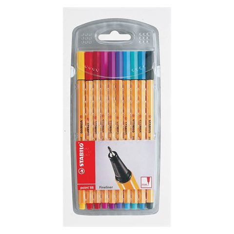 STABILO Point 88 0.4mm Tűfilc készlet 10 szín filctoll, marker árgrafikon