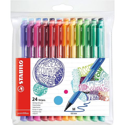 Tűfilc készlet - 0,8 mm vonalvastagsággal, kerek alakú, tinta szín(ek), gyorsan száradó, háromszög alakú markolat, 24 tűfilc a csomagban A jól kihasználható STABILO point Max 24 db tok termék legfontosabb tulajdonságai A pompás STABILO tűfilc készlet az író- és művészeti kellékekhez tartozik Remekül használható különböző kreatív alkotá