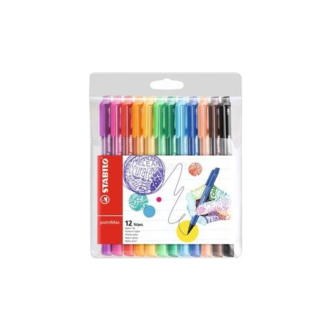 STABILO PointMAX 12db-os vegyes színű filctoll készlet (STABILO_488/12-01) filctoll, marker termékleírás