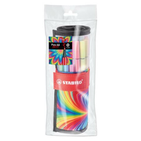 Rostirón, készlet, STABILO Pen 68 ARTY, 25 különböző színű (TST682507120) Határtalan kreativitás a papíron! -praktikus, ARTY mintázatú felcsavarható tolltartó -prémium minőség -írásra és rajzolásra egyaránt alkalmas -légáteresztő szeleppel ellátott