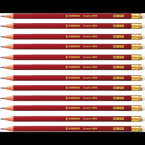 STABILO Swano, piros ceruza radírral, 12 db (4006381123693) ceruza árgrafikon