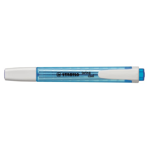 Szövegkiemelő, 1-4 mm, STABILO Swing Cool, kék - STABILO Anti-Dry-Out technológia: 4 órán át nem szárad ki kupak nélkül, a koncentrált munkáért - tökéletesen használható útközben, praktikus klippel - fényes, csíkozott tolltest - csúszásmentes, matt fel