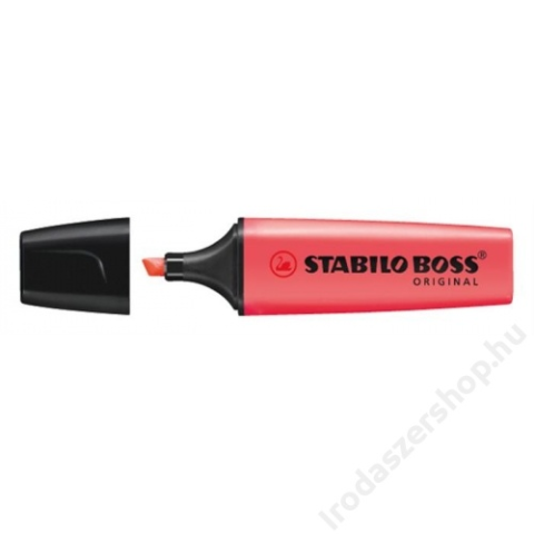 Szövegkiemelő, 2-5 mm, STABILO BOSS original, piros (TST70401) prémium minőségű szövegkiemelők fluoreszkáló szín 4 órán át nem szárad ki kupak nélkül vízbázisú tinta, intenzív fedésű színek vágott hegy (2-5 mm) utántölthető a tinta színével megegyező