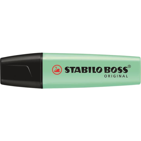 Szövegkiemelő, 2-5 mm, STABILO BOSS original Pastel, menta Az ikonikus szövegkiemelő újjászületése! -prémium minőségű szövegkiemelő pasztell színben -4 órán át nem szárad ki kupak nélkül -vízbázisú tinta, intenzív fedésű színek -vágott hegy (2-5 mm)