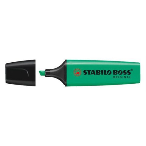 Szövegkiemelő, 2-5 mm, STABILO BOSS original, türkiz prémium minőségű szövegkiemelők fluoreszkáló szín 4 órán át nem szárad ki kupak nélkül vízbázisú tinta, intenzív fedésű színek vágott hegy (2-5 mm) utántölthető a tinta színével megegyező tolltest