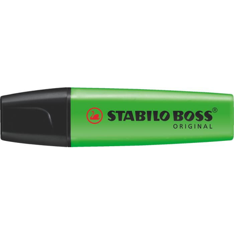 Szövegkiemelő, 2-5 mm, STABILO BOSS original, zöld prémium minőségű szövegkiemelők fluoreszkáló szín 4 órán át nem szárad ki kupak nélkül vízbázisú tinta, intenzív fedésű színek vágott hegy (2-5 mm) utántölthető a tinta színével megegyező tolltest ír
