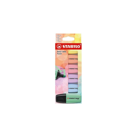 Az első BOSS MINI PASTEL készlet, amely része lesz az állandó szortimentnek. A hagyományos szövegkiemelés mellett ideális kreatív íráshoz, kalligráfiához, naplózáshoz. Árnyalatai a legnépszerűbb pasztell színek. Prémium minőségű szövegkiemelő. Vízbázisú tinta. Vonalvastagság: 1-4 mm.