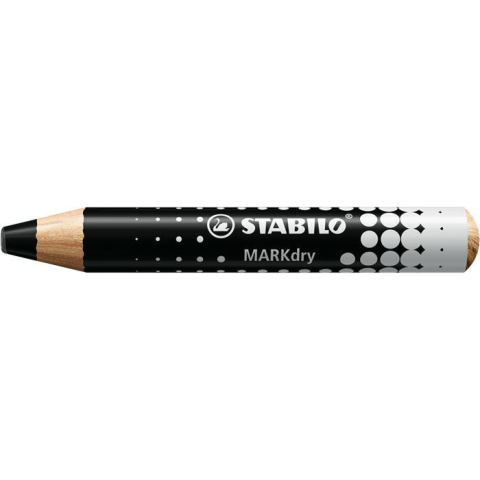 Táblaceruza fehértáblához, flipchartpapírhoz, kúpos, STABILO MARKdry, fekete A STABILO MARKdry egy vastag színes jelölő ceruza whiteboard táblákhoz és flipchartokhoz. -ideális papírra és sima felületekre, ahonnan könnyen letörölhető száraz vagy nedves
