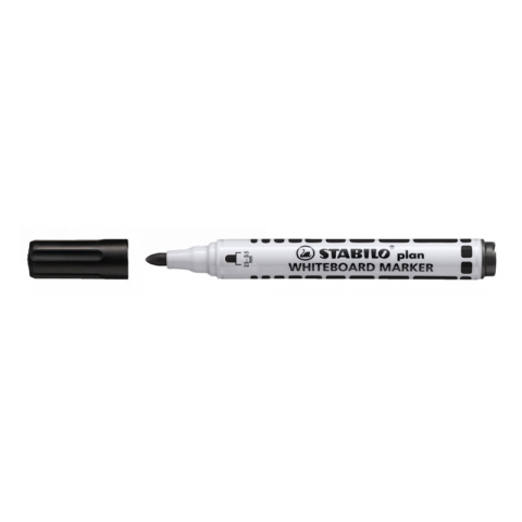 Stabilo Plan fehértáblafilc írásra, rajzolásra, prezentációkhoz. Gyorsan száradó, könnyen törölhető vízbázisú tinta. Hosszú nyitvatarthatóság. Hegykialakítás: kerek. Írásvastagság: 2,5-3,5 mm. Szín: fekete. .