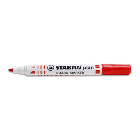 Stabilo Plan fehértáblafilc írásra, rajzolásra, prezentációkhoz. Gyorsan száradó, könnyen törölhető vízbázisú tinta. Hosszú nyitvatarthatóság. Hegykialakítás: vágott. Írásvastagság: 1-4 mm. Szín: piros. .
