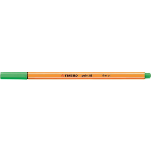 Tűfilc, 0,4 mm, STABILO Point 88, világos smaragd (TST8816) - vékony és pontos írás - rozsdamentes fém hegy a hosszú élettartamért - hatszög alakú, világszerte ismert csíkos dizájn - műszaki rajzhoz kiválóan alkalmas - hosszú ideig nem szárad ki kupak