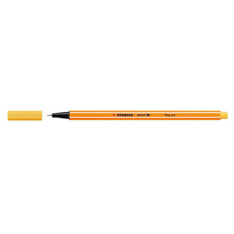 Tűfilc, 0,4 mm, STABILO Point 88, sárga - vékony és pontos írás - rozsdamentes fém hegy a hosszú élettartamért - hatszög alakú, világszerte ismert csíkos dizájn - műszaki rajzhoz kiválóan alkalmas - hosszú ideig nem szárad ki kupak nélkül - szellőző ku